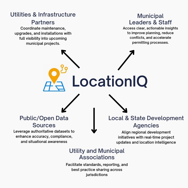 LocationIQ serves as a central clearinghouse for street planning and location-based intelligence—streamlining collaboration across all key stakeholders involved in public infrastructure and urban development.